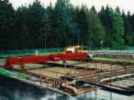 早い朝食を済ませ、ロビーでミーティング。疲れはない。今日からは行政機関訪問なので、全員がスーツにネクタイ。同宿している日本人観光客の女性たちが、「あら、お仕事だったんですか」と。 ミュンヘンの人は時間に正確である。遅れることは無論ないが、先に来て待っているということもない。我々は8時30分頃、市役所に到着した。約束の時間まで、30分程ある。早速、好奇心旺盛に庁舎の内外を見てまわる。仕事が始まる時間帯のせいもあり、皆忙しそうに歩いている。「勤勉なドイツ人」という表現が頭をよぎる。しかし庁舎は古い。極めつけはエレベーターだ。各階ホールの壁に長方形の穴が二つ並んで空いていて、その中を移動式の棚がゆっくりと動いていく。右の穴は下行き、左の穴は上行き。もちろんドアはない。ちょうど観覧車と立体駐車場を組み合わせたようなものである。職員は器用にそれに飛び乗る。ひとつの棚に2人づつ。日本人ならイライラするところだ。欧州の近代化が、歴史と伝統を大切にしながら進められてきた証の断片を見た思いがする。 活力と安らぎ―緑の街ミュンヘン 我々を迎えてくれたのは、今年3月までミュンヘン市都市計画局長だったゲルハート・マイヘーナーさん。現職中を含め、街づくりの講演で世界中を飛び回っている人だ。日本にも何度も来たという。役人という印象はなく、専門家という表現が当てはまる。それもそのはず、ミュンヘンでは都市計画にたずさわる市職員は、大学時代にそれを選考したことが採用条件であり、採用後は他の部局に移ることはないという。 スライドを使ったゲルハートさんのレクチャーと質疑など、およそ3時間に及ぶやりとりは、その後の我々の欧州視察の内容と方向を左右することとなる。 通訳(写真左)をはさんだやりとりであり、かつ、多岐にわたる内容を短時間に要約したやりとりであったことから、ゲルハートさんの意図を我々が十分に理解できたとは言い難い。我々なりに受け止めたことは、およそ次のとおりである。 まず第一に、ミュンヘン市の街づくりにあたっては、統一し、そして徹底した都市の設計思想が貫かれているということ。それは、前述したような担当部局職員のエキスパート化だけではなく、独立した建築家が街づくりに深く関与していることにも示されている。 第二に、そうした街づくりは、地方分権にもとづき、ミュンヘン市が独自の計画権を行使して進められてきたということ。 第三に、建造物の建設計画には、何重ものクリアーすべき段階が設けられているが、その中で二度にわたる市民参加が法的に保証されていること。 第四に、当初はいろいろな障害があったこと。特に、政治家と投資家(ゲルハートさんはそう表現していた)の癒着によりものごとが密室で決まり、都市計画(行政)にそれが押し付けられていた時代もあったこと。しかし現在では、市民監視の目が強まり、都市計画(行政)、市民、政治家、投資家、メディアの五者が、それぞれの機能と役割を果たしなから、街づくりが進められていること。 我々は、ゲルハートさんと話しているうちに、歴史と伝統と安らぎと活力が同居する、魅力あるミュンヘン市の秘密の一端に触れることが出来た喜びを覚え、再会を約束して、ミュンヘン市役所を後にした。 生き返った湖・テーゲルン湖 昼食後、できることなら、ゲルハートさんの話を実際に体験するため、2〜3日滞在したい気持ちを振り切り、我々はオーストリアとの国境近くにある、バイエルン州テーゲルン湖に向かった。 テーゲルン湖は、まわりを五つの町村に囲まれた湖であり、夏にはミュンヘンなどからも観光客が訪れ、水浴や日光浴を楽しむ観光地だ。 我々を乗せたワゴン車が湖岸に到着したころ、あいにくの雨が降り出した。雨の湖もなかなかいいものだと、しばらく車窓から眺めていたが、どこか日本の観光地にあるそれとは違う。まるで、人間の出入りがない山奥にある湖の趣なのである。しかし、よく見ると、ホテルや別荘などの建物もあるし、散策路になった湖岸にはベンチなども置いてある。問題は、それらの物がまるで自然と一体化しているかのように、違和感がないということだ。もちろん高層建物など無い。車道も水しぶきがかかるような位置につくられている日本のそれとは違い、高い樹木に隠れるようにつくられている。 このように自然と共にある観光地は、ヨーロッパでは簡単に探すことができるに違いない。我々がテーゲルン湖を視察先に選んだのは、他の理由があるからだ。実はここは、かつて、「死の湖」直前まで汚染が進み、富栄養化によるバクテリア汚染で水浴禁止が現実問題となった湖なのである。 それがどうして、極めて短期間に生き返ることができたのか。世界最初の湖水浄化作戦はどのように展開されたのか。我々は大きな興味を持ちつつ、汚水処理場を訪れた。 我々を迎えてくれたのは、処理場の責任者ブライラーさんと、技術