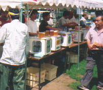 晴天のうえ、会場には200を越える大小の炭コンロがあるため、温度はすごい。上半身裸のひとも、あちこちで見受けられる。 |
